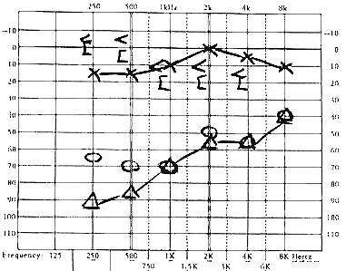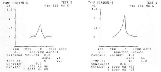 This 28 year old male patient was diagnosed at the age of 6 as having a unilateral (AD) essentially conductive loss of hearing, mistakenly ascribed to ear infections in infancy. Figure 1 show a contemporary audiogram. Figure 2 presents tympanometry results.