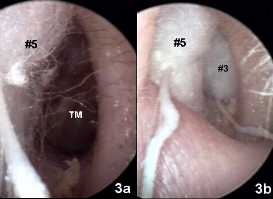 The most challenging ear impression-taking experience for the audiologist is that of an ear which has been surgically altered through intact wall mastoidectomy, modified radical mastoidectomy, radical mastoidectomy or fenestration, which included a mastoidectomy for exposure. The extensive iatrogenic undercut in the posterior bony canal must be carefully observed, then safely and effectively provided for in order to avoid impression material impaction. One wishes to achieve accurate dimensioning in the lateral cartilaginous canal with some extrapolated, linear extension into the medial canal area contiguous with the surgical canal defect. Demonstration by Video Otoscopy has been very helpful in securing the patient's full cooperation and understanding of the difficulties and limitations in fabricating an acoustic coupling for this type of ear. The VO images below represent the documentation of an impression-taking procedure in the right ear of a 69 year old female patient with bilateral modified radical mastoidectomies to be fitted binaurally with CLASS II full concha hearing aids. Candidates for corrective amplification in these post-surgical categories are invariably under the ongoing care of an ENT physician for cavity hygiene and maintenance. It is essential that the ear is free of cerumen and debris and that full ENT medical concurrence is obtained before proceeding with the impression-taking and hearing aid fitting. Figure 1 (19k) shows the VO view of the right ear canal which has undergone a classic Bondy-type modified radical mastoidectomy. The PVT in this ear is 4.5ml eq. ![]() In Figure 2 (19k) we see a surgically enlarged meatal aperture in the background with #3 and #5 (Hal-Hen) cotton blocks and earlight tip in the foreground. Foam blocks do NOT provide adequate protection for this procedure. ![]() Figure 3a (22k a+b) demonstrates placement of the large #5 cotton block into the posterior wall mastoid cavity. The anterior margin of the block should be visible. If not, a larger sterile cotton block should be hand-tied with button twist. The #3 cotton block is then inserted to protect the TM (3b). Size and placement of the multiple blocks will vary from case to case. ![]() The author has found that monomer/polymer (powder and liquid) impression material is less likely to impact or tear than silicone. Figure 4 (21k) presents the resulting ethyl methacrylate impression with cotton blocks attached. ![]() Contingent upon the acoustic coupling class of the fitting, in this case, CLASS II (vented), the impression should be detailed with a hand motor tool to ease severe undercuts. Figure 5 ( 23k) displays the impression pre- (a) and post-detailing (b). The laboratory should be informed that this is a surgically altered ear. ![]() Figures 6a and 6b (25k) show the resulting full concha hearing aid in situ (a) and (b) in isolation to demonstrate the canal segment of the instrument which was both comfortable and feedback-free at time of fitting. ![]() |