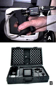 Fig. 1.Basic, portable composite video VO systems from (A) Starkey and (B) Rexton.