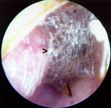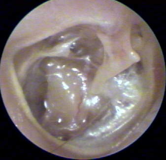 Figure 2 shows the presence of a desquamation web or neomembrane totally occluding the EAC. The audiometric profile for this case revealed a mild (10 dB - 15 dB) conductive overlay with a normal (type Ad) tympanogram. The condition had been previously misinterpreted elsewhere as a scarred TM. Removal of the web, by an otolaryngologist [ENT], resulted in a closure of the air-bone gap.