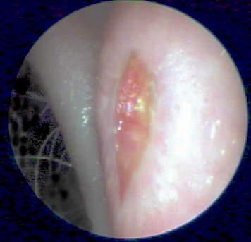 Miniscule perforations can be differentiated from monomeric scars by placing the endoscopic lens deep within the EAC , thereby allowing a full view of the TM, including the annulus and vascular strip. It is possible to verify the presence of a monomeric TM scar with use of the VO intrinsic Siegle/Politzer bulb and then correlate that observation with an abnomally peaked (Type AD) tympanogram. The presence of an occluded TM perforation can account for an abnormally elevated equivalent EAC volume [PVT]. Observable TM scarring can suggest causation of absent acoustic reflexes.
